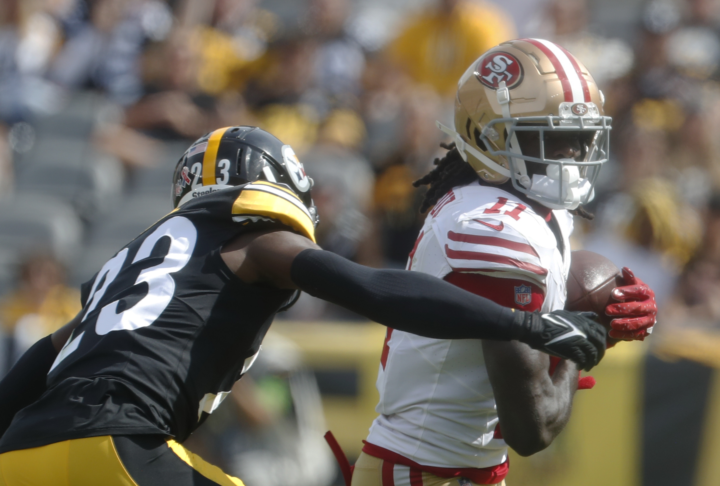Report: 49ers want 2 draft picks from Steelers for Brandon Aiyuk Report: 49ers want 2 draft picks from Steelers for Brandon Aiyuk Insidethe492024-08-09T22:33:23-04:00August 9th, 2024 at 10:33 PM|News| Read More