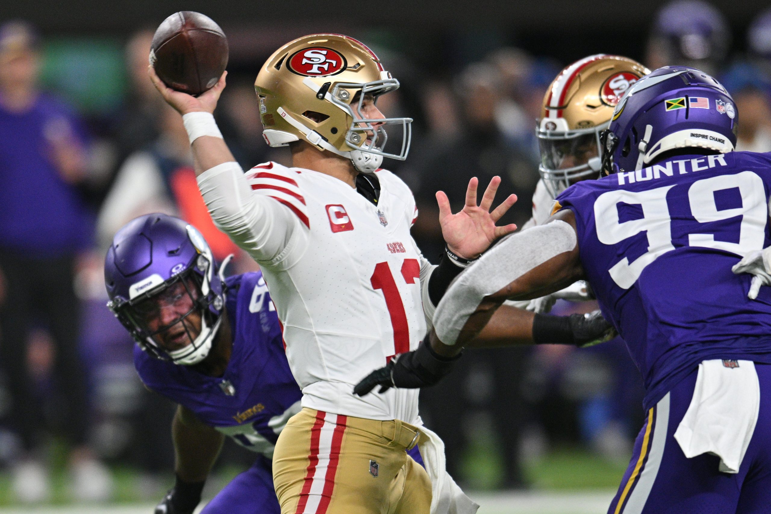 NFL Twitter reacts to Brock Purdy’s 2 INT performance in upset loss to Vikings NFL Twitter reacts to Brock Purdy’s 2 INT performance in upset loss to Vikings Insidethe492023-10-24T00:06:48-04:00October 24th, 2023 at 12:06 AM|News| Read More