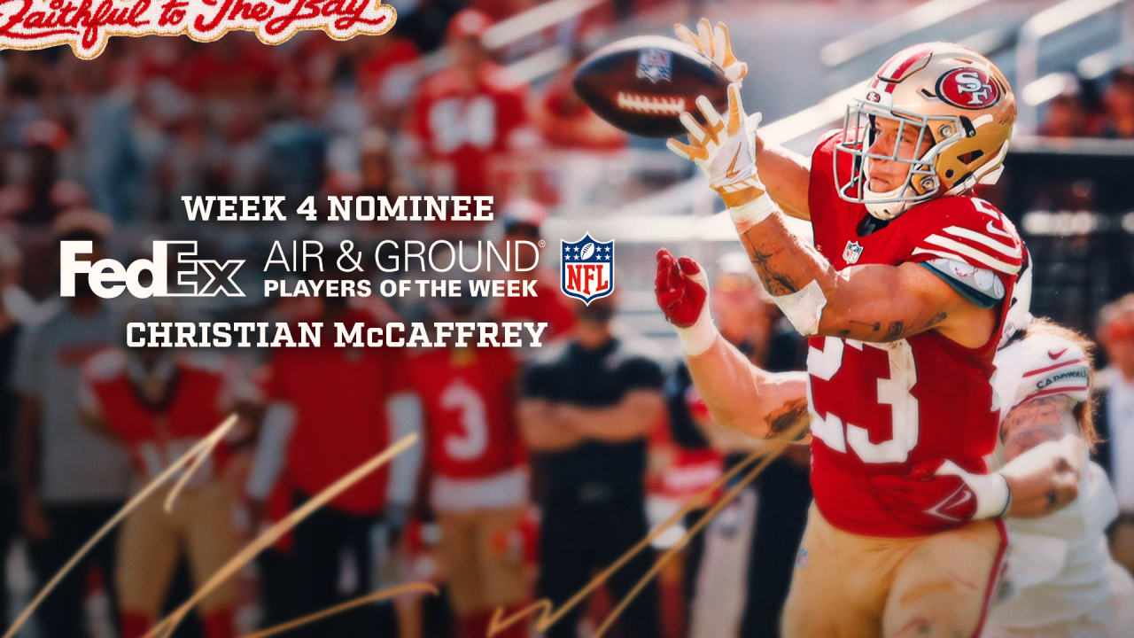 Christian McCaffrey Nominated for FedEx Ground Player of Week 4 Christian McCaffrey Nominated for FedEx Ground Player of Week 4 Insidethe492023-10-02T14:53:00-04:00October 2nd, 2023 at 2:53 PM|News| Read More