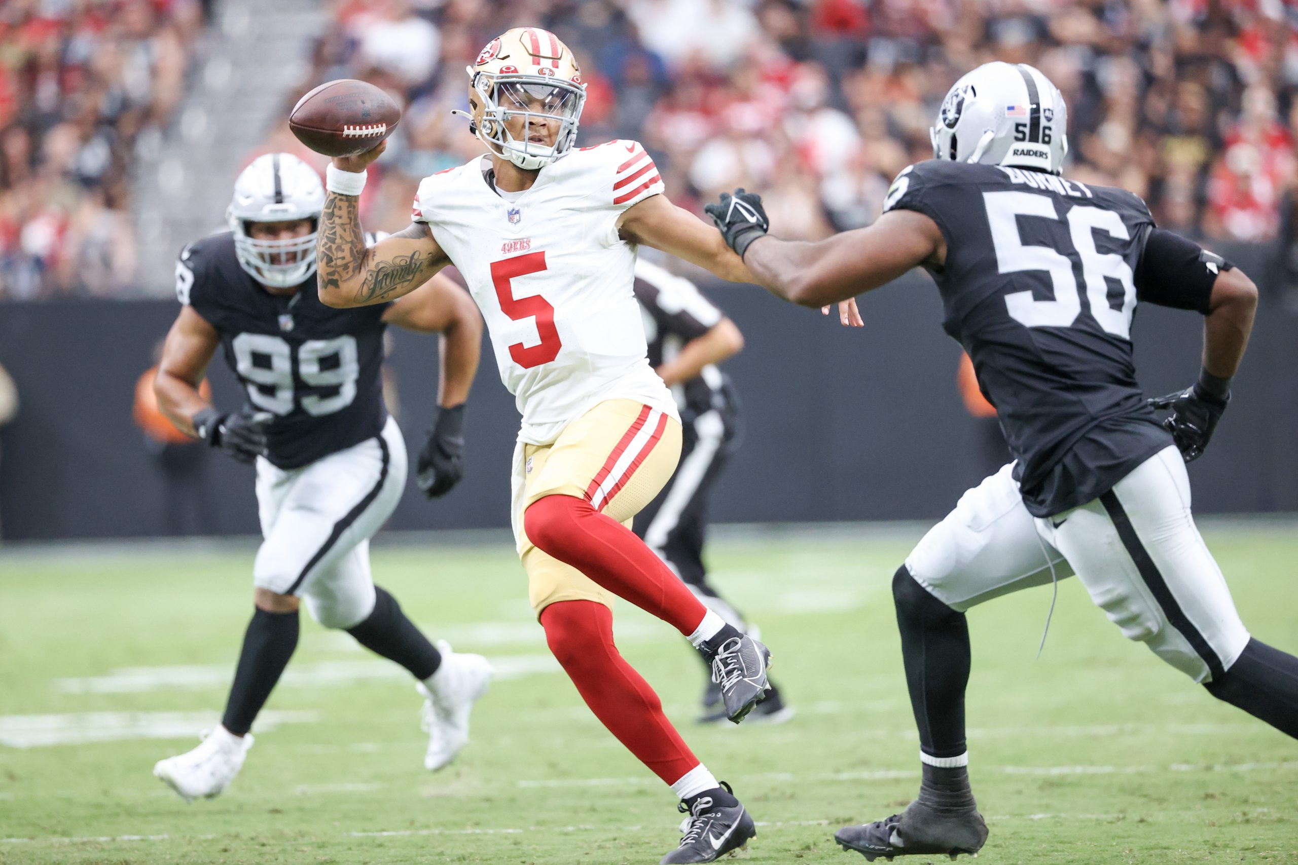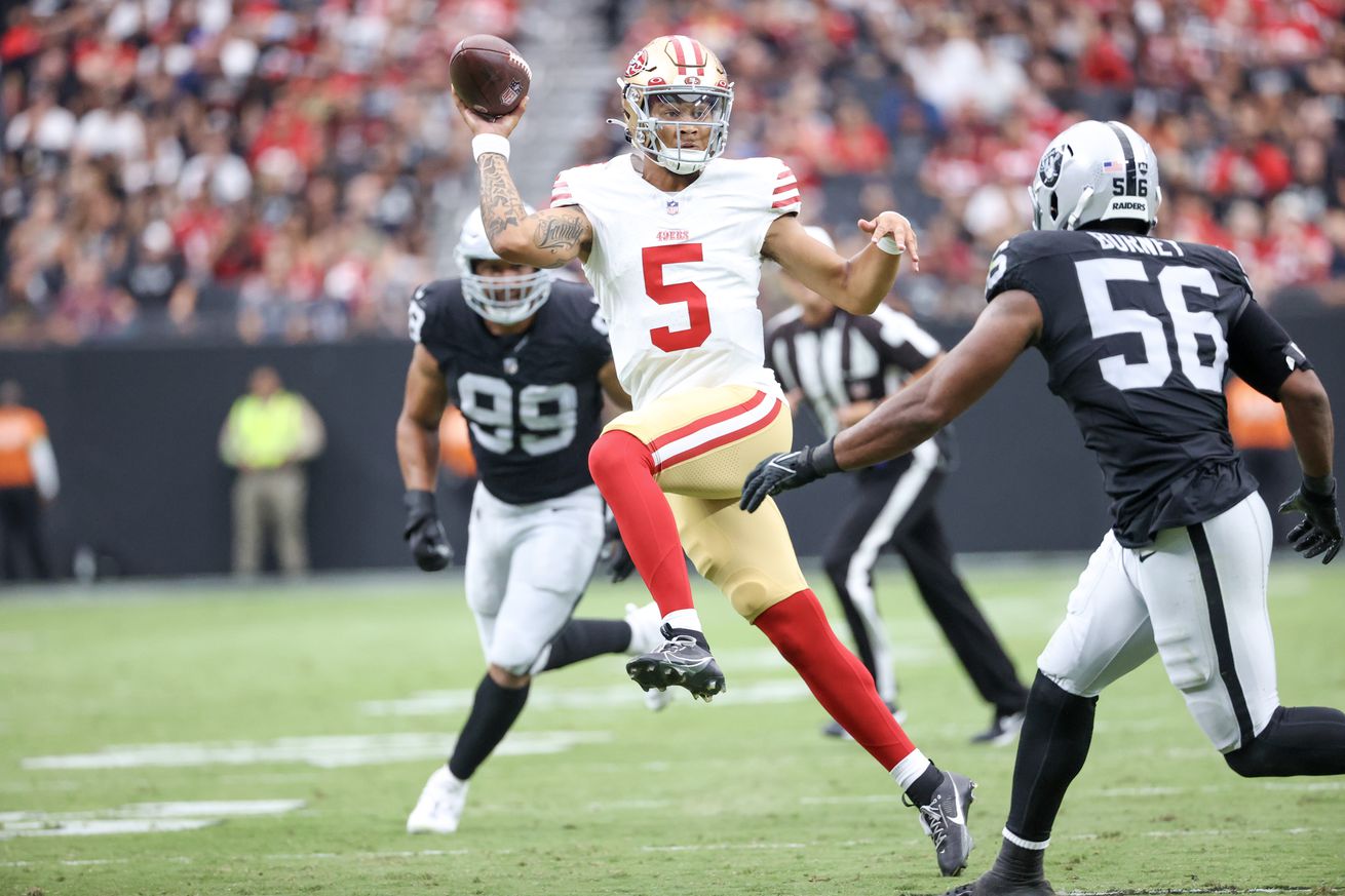 49ers Twitter reacts to Trey Lance’s performance in the preseason vs. Raiders 49ers Twitter reacts to Trey Lance’s performance in the preseason vs. Raiders Insidethe492023-08-13T18:03:06-04:00August 13th, 2023 at 6:03 PM|News| Read More