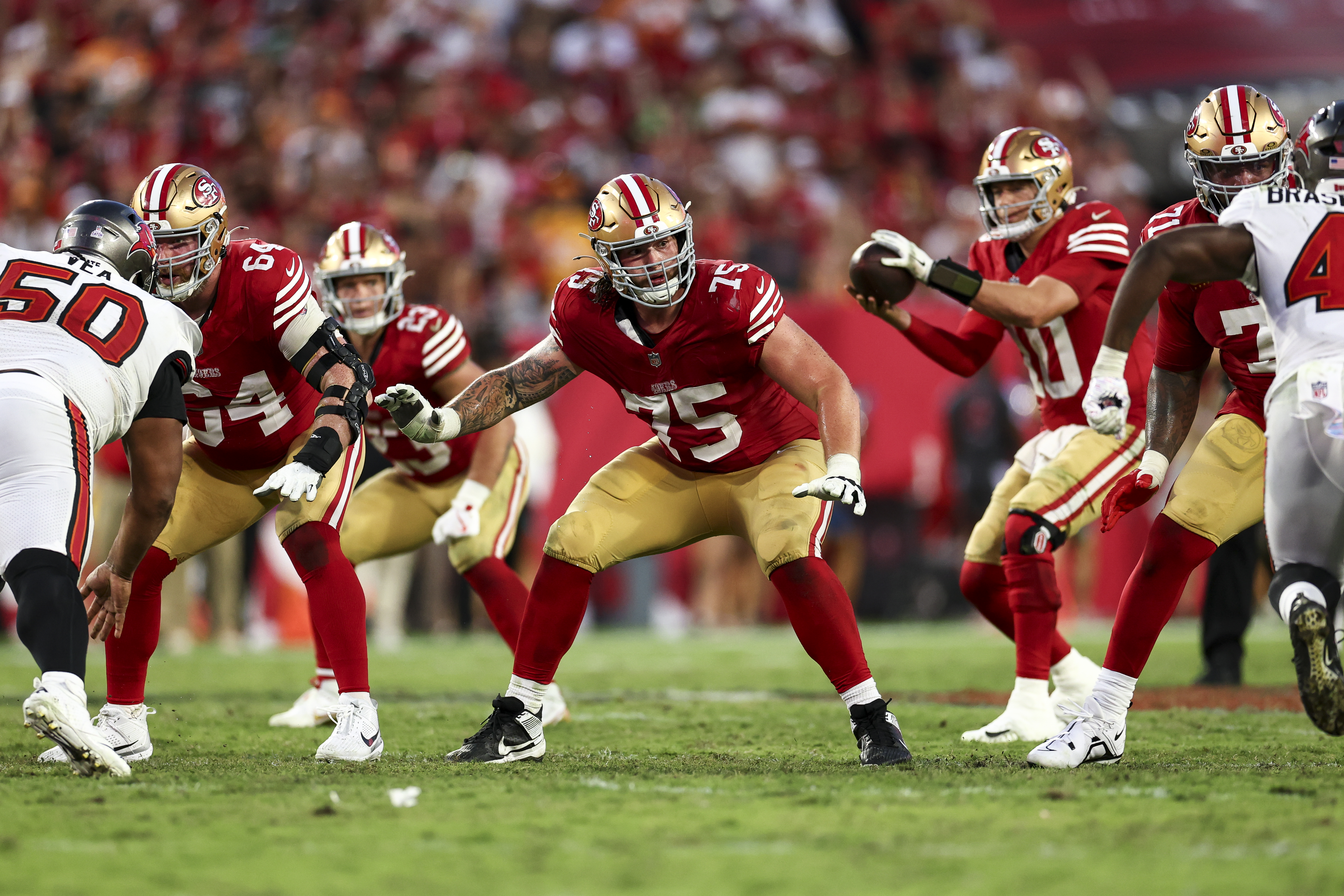 Aaron Banks had been the long-term starter at left guard before he departed in free agency last offseason. Injuries limited Banks’ consistency in 2023 and 2024, with Burford starting nine games and Bartch two games there in 2025.