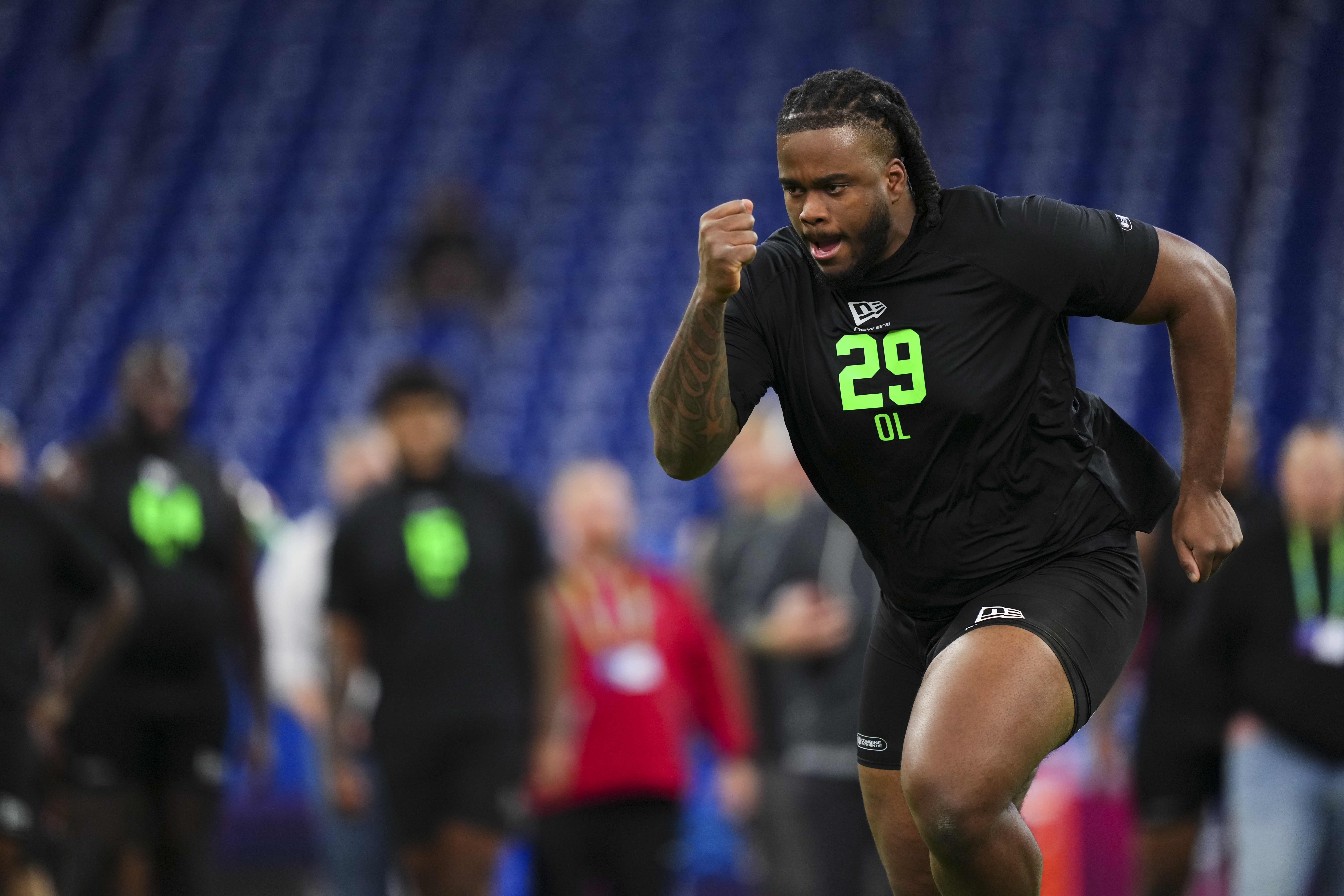 INDIANAPOLIS, IN – MARCH 01: Max Iheanachor #OL29 of Arizona State participates in a drill during the 2026 NFL Scouting Combine at Lucas Oil Stadium on March 1, 2026 in Indianapolis, Indiana. (Photo by Cooper Neill/Getty Images) | Getty Images