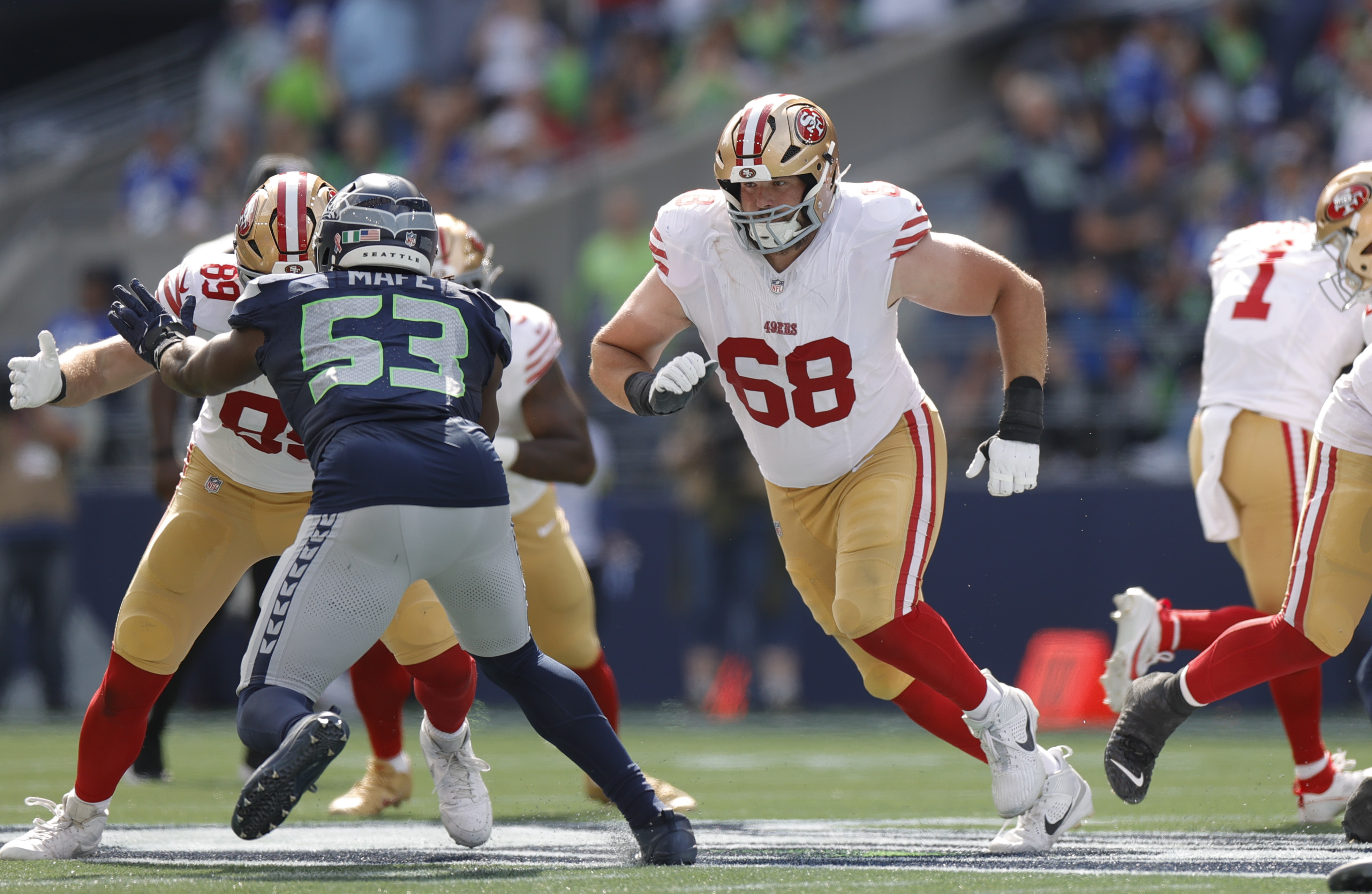 Things could soon turn but, for a team that has often received criticism for not ploughing enough resources into the offensive line, the 49ers’ not insignificant investment into a player they have developed since 2020 appears to be paying off.
