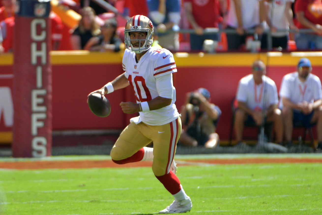 49ers injury report: Jimmy Garoppolo carted off with leg injury 49ers injury report: Jimmy Garoppolo carted off with leg injury Insidethe492018-09-23T16:30:08-04:00September 23rd, 2018 at 4:09 PM|News| Read More